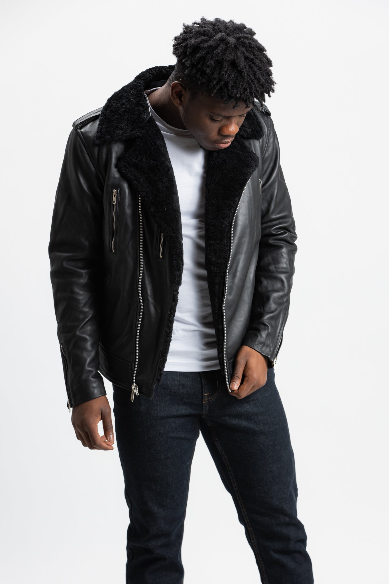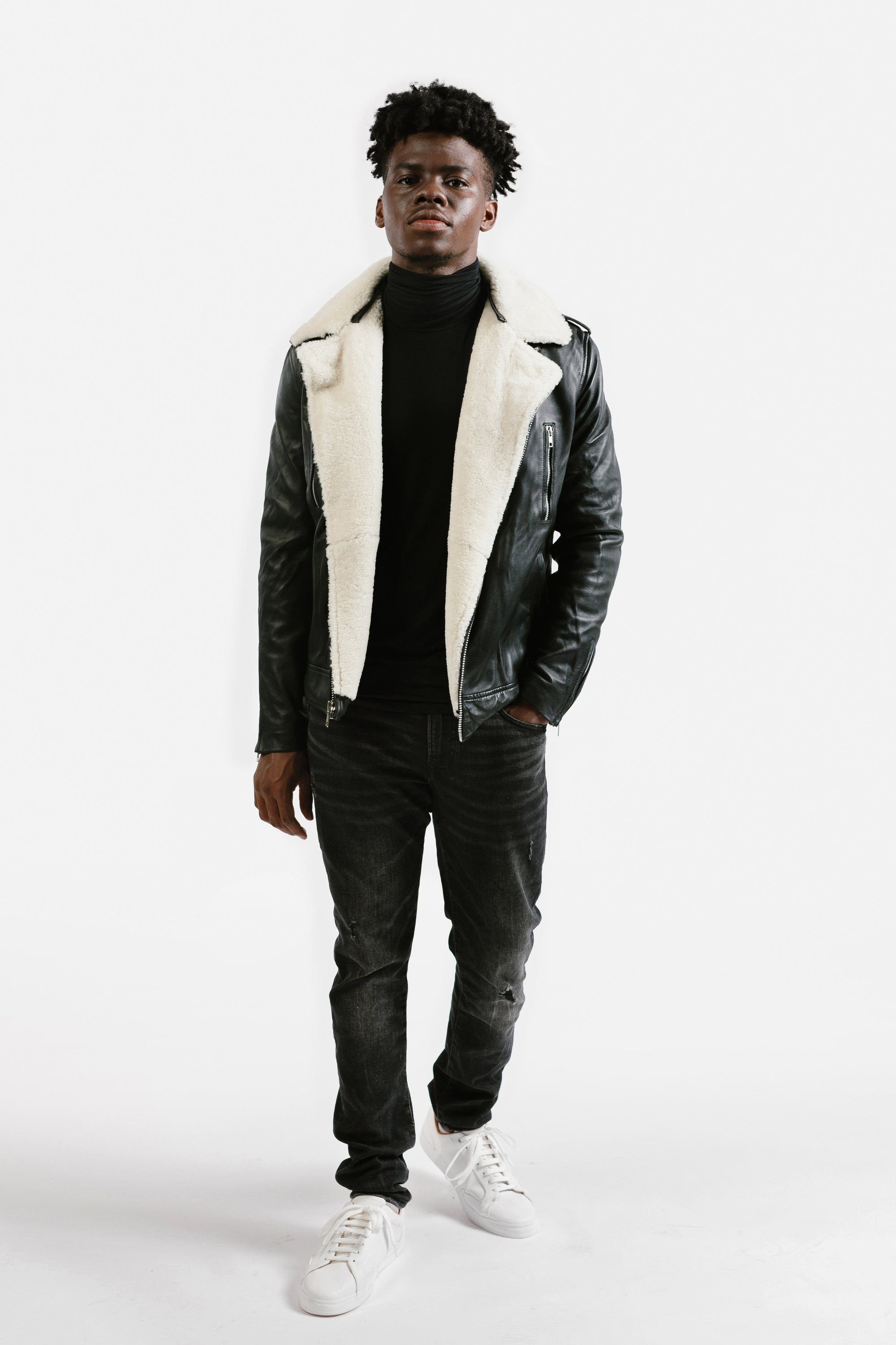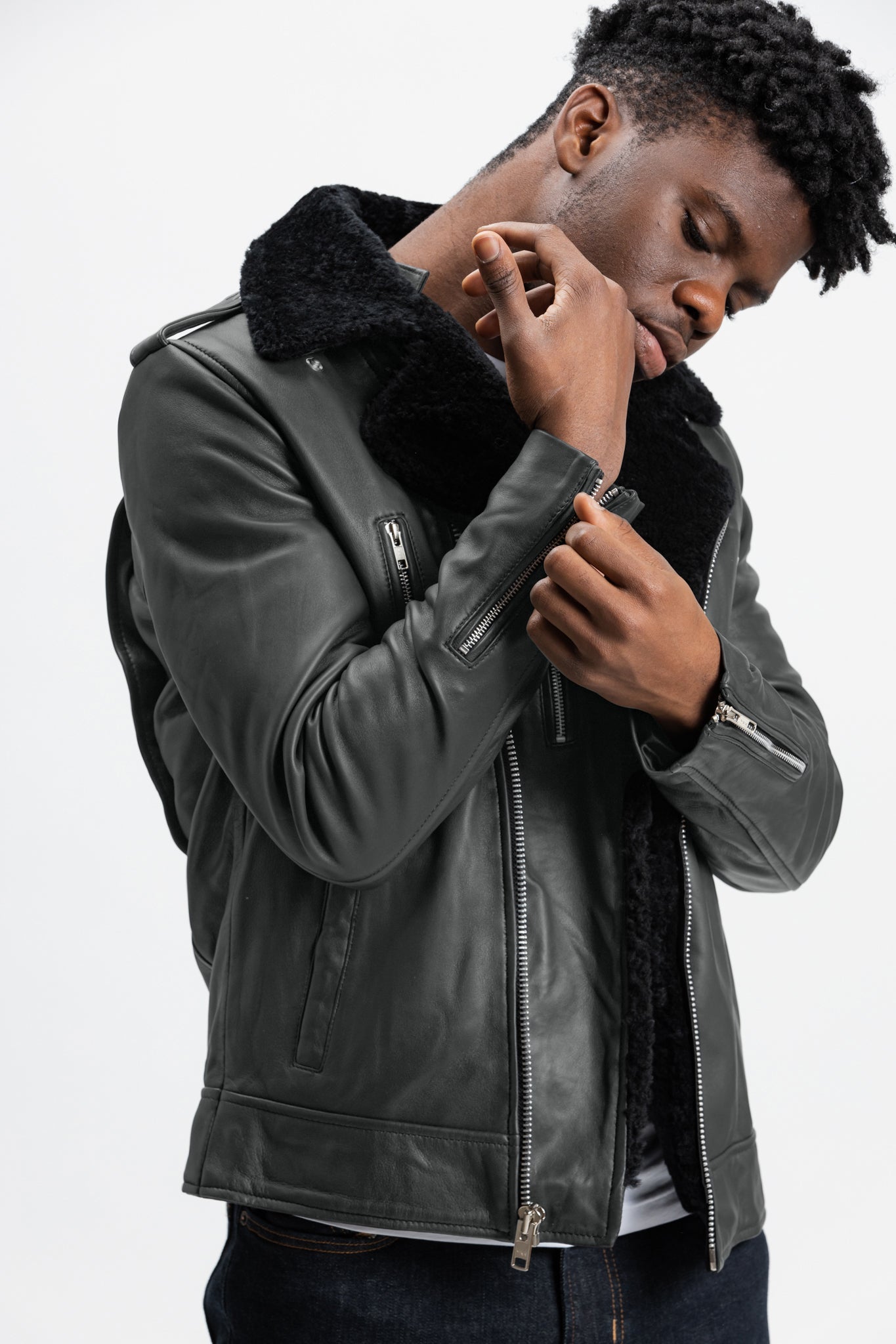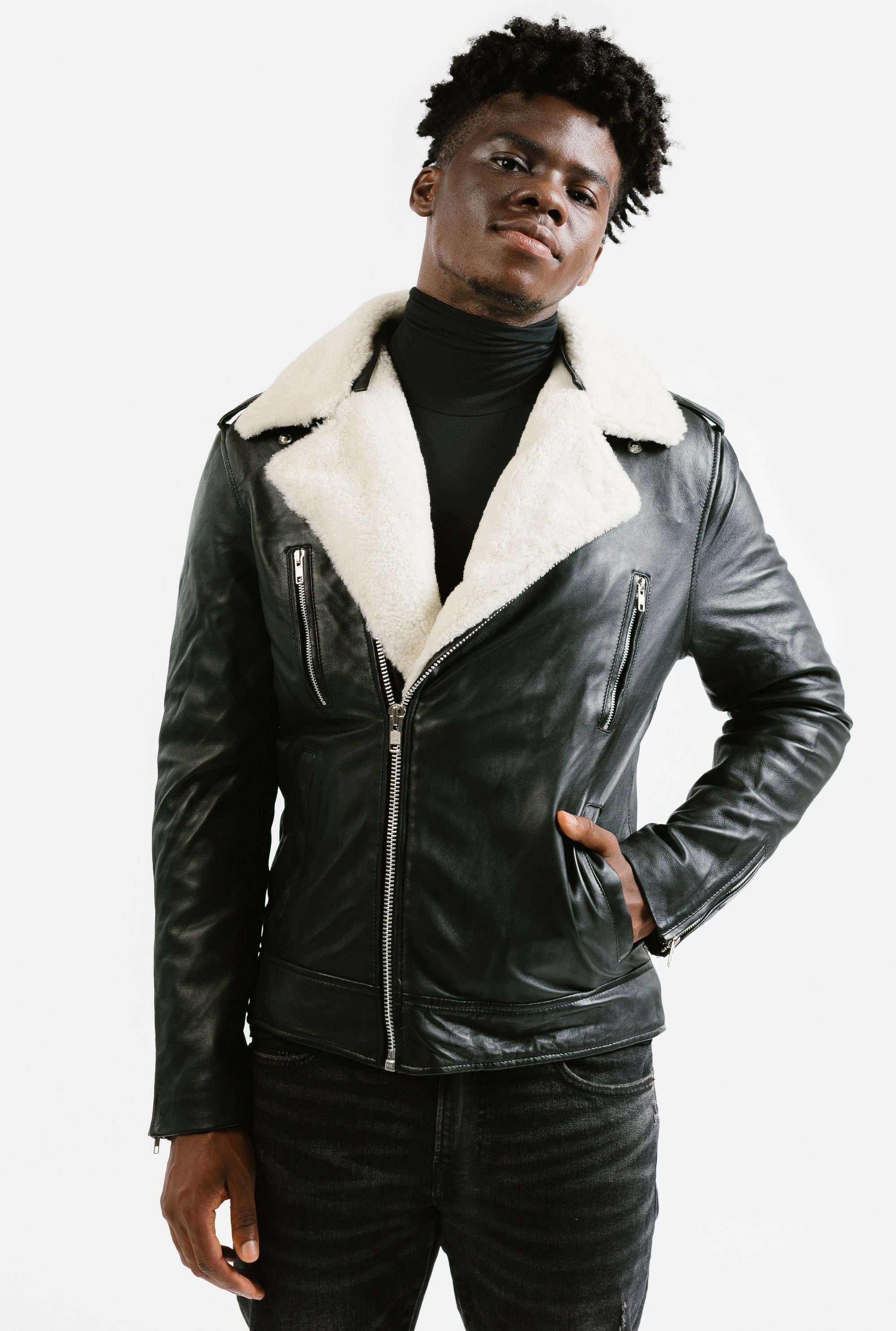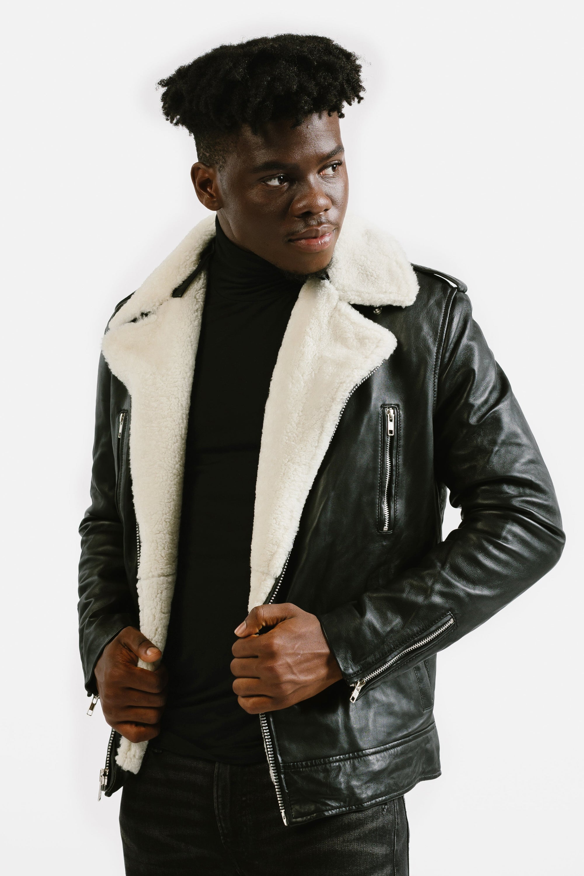Pre-Order Non-Water Repellent Shearling Trim Leather Jacket | Prometheus