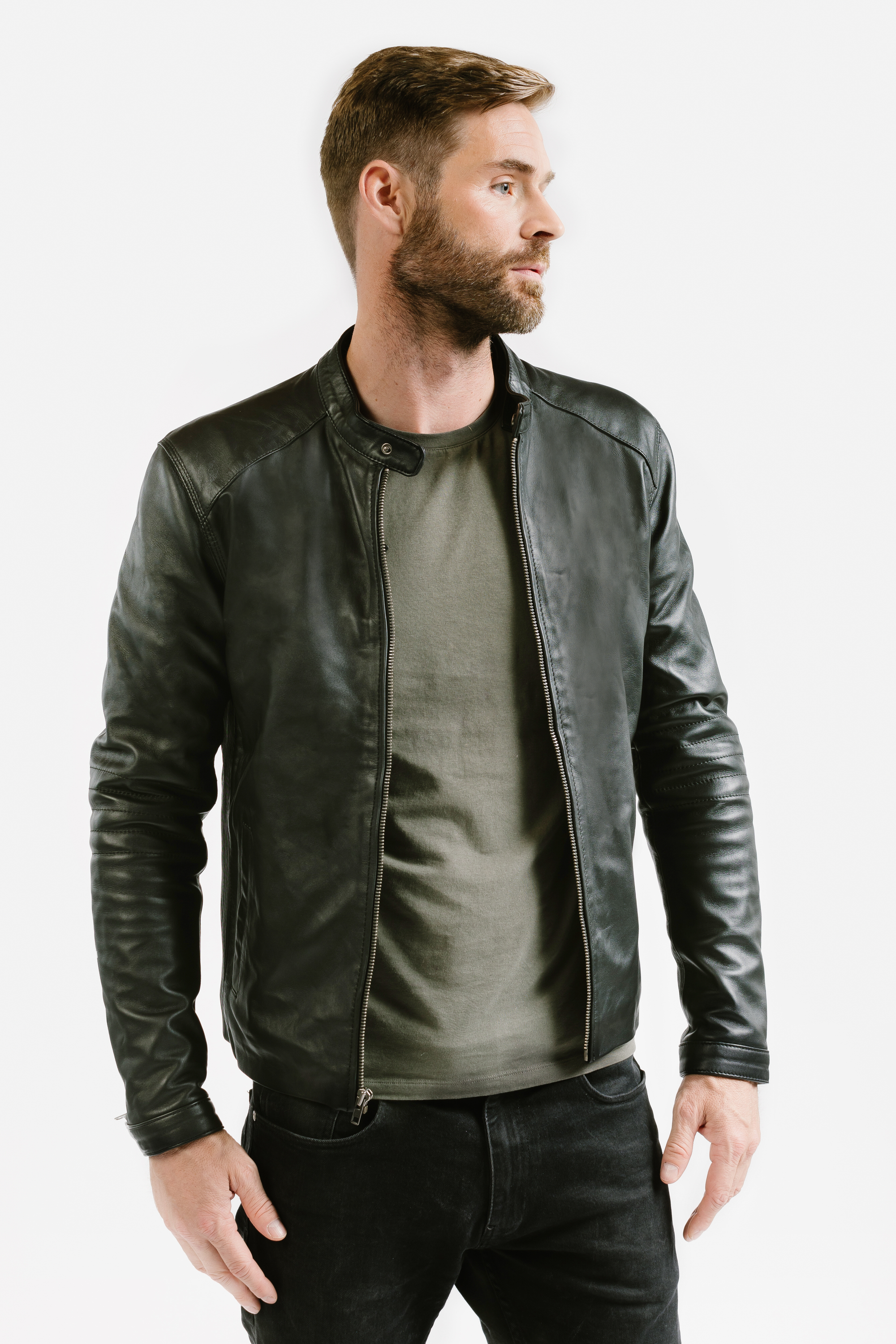 Complete collection of our men's hand-crafted & water-repellent leather and nubuck jackets